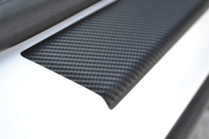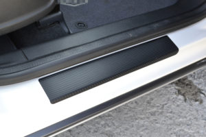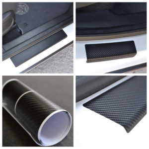 3M Vinyl Film with Carbon imitation structure is a cheap and secure way to protect car door sills from scuff and paint scratches.